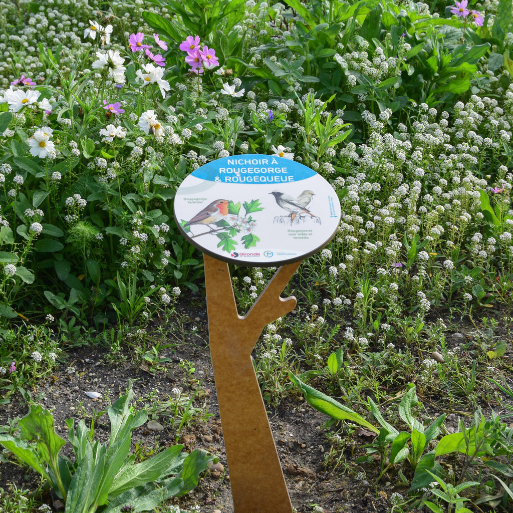 Conçus dans la lignée des valeurs du label BiodiverCity®, nos panneaux allient esthétique et durabilité. Les visuels sont en Stratimage® (Stratifié HPL), matériau éco-conçu et PEFC, qui résiste aux intempéries, aux UV et au vandalisme. Les poteaux sont en sapins Douglas issus de forêt d'Occitanie.