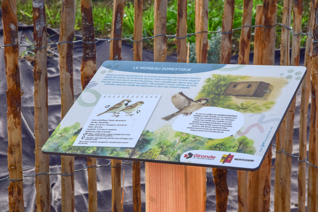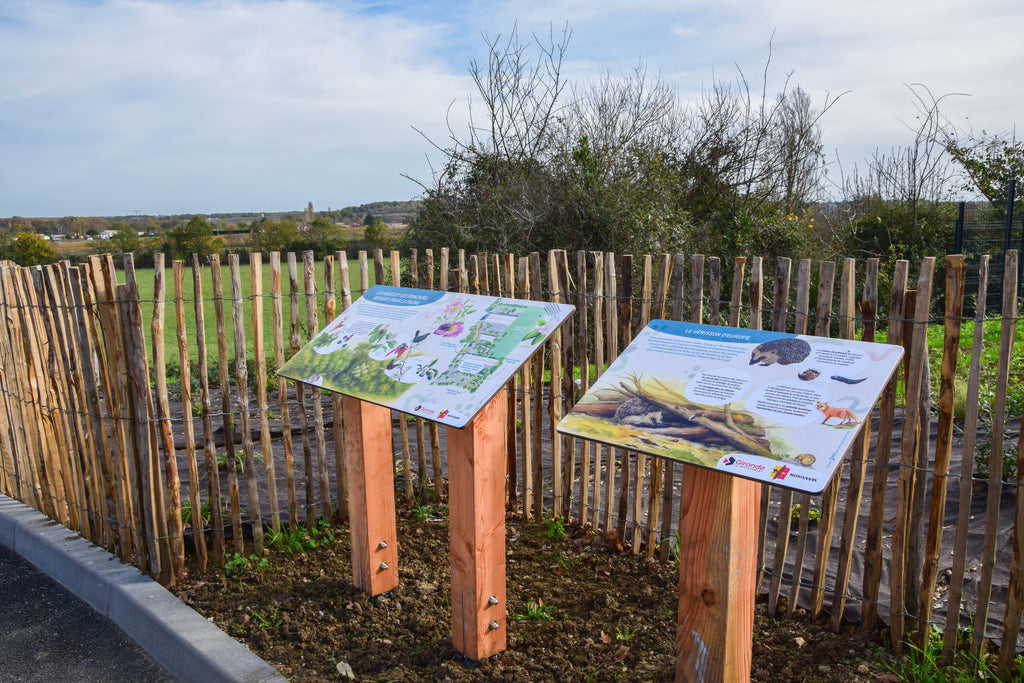 Bouygues Bâtiment Centre sud-ouest et le Département de la Gironde nous ont fait confiance pour la conception des visuels (rédaction de contenu pédagogique, illustrations...) et la fabrication de l'ensemble des équipements pédagogiques. Imaginée pour ce lieu d’apprentissage en lien direct avec la nature, notre signalétique met en valeur la faune et la flore locale mais aussi les aménagements mis en place et les modes de gestion écologique des espaces verts.