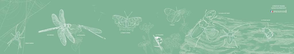 - Un visuel issu de notre catalogue composé d'un fond coloré et des espèces dessinées façon "gravure" (voir visuel ci-dessous). Nous pouvons ajuster le thème et ajouter vos logos.