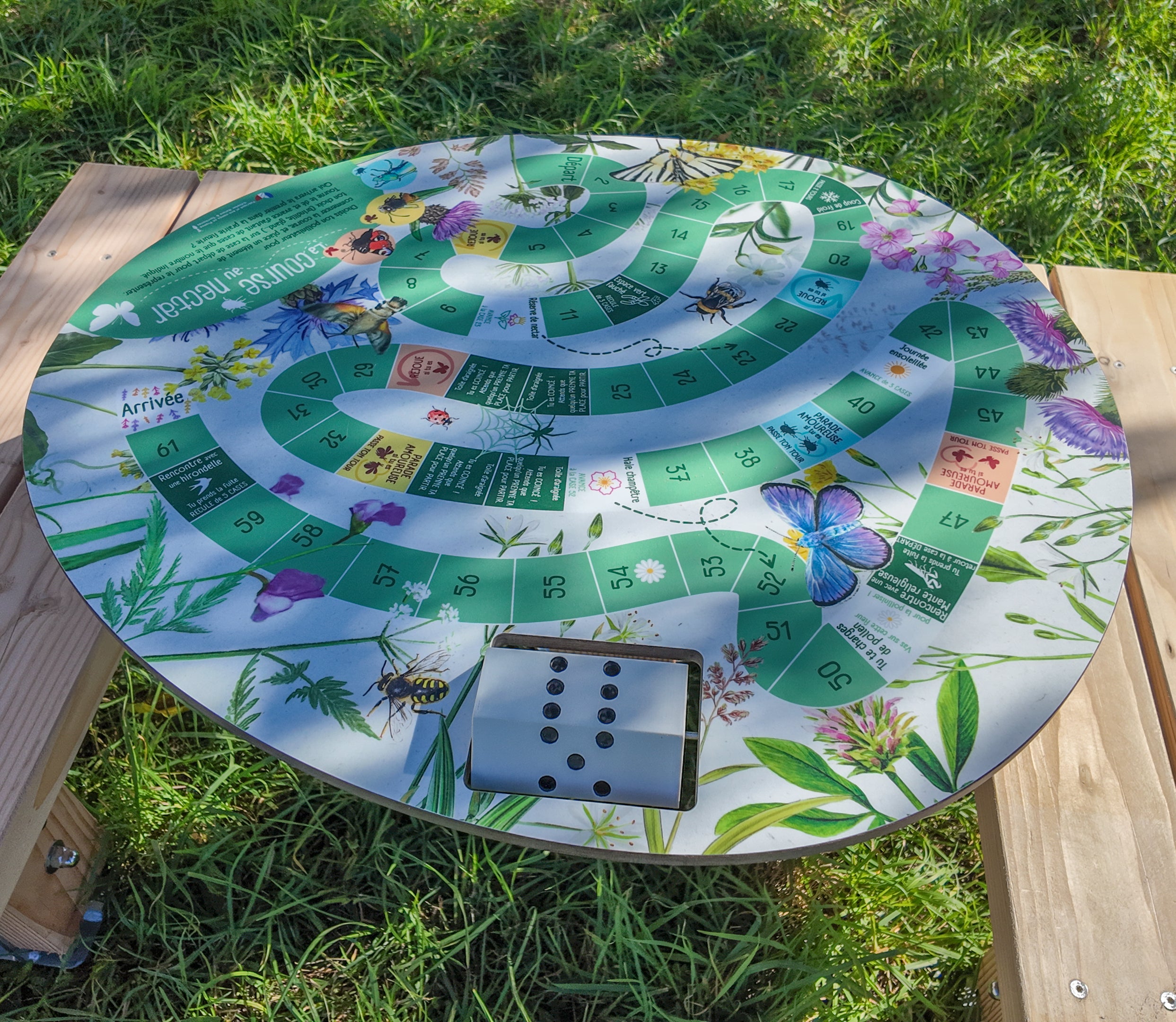 Idéal pour passer du temps en famille dehors et pour apprendre en s'amusant, ce jeu de l’oie sur la pollinisation permet de se mettre dans la peau d'une petite osmie ou d'un papillon et de partir à la recherche d'une prairie fleurie. Des facilitateurs et des embuches attendent les joueurs qui feront soit avancer soit reculer de plusieurs cases : une attaque de prédateur, une fauche pas très tardive ou un boost de nectar par exemple !